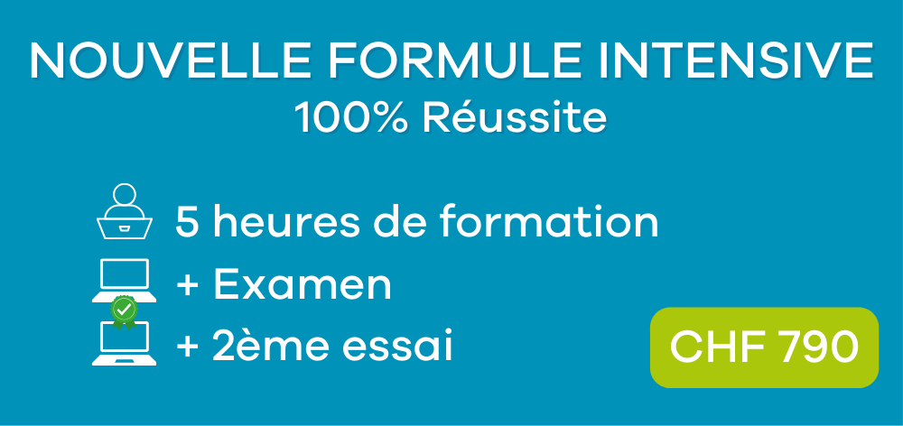 • Formule complète 5 heures de formation + Examen + 2ème essai : CHF 790